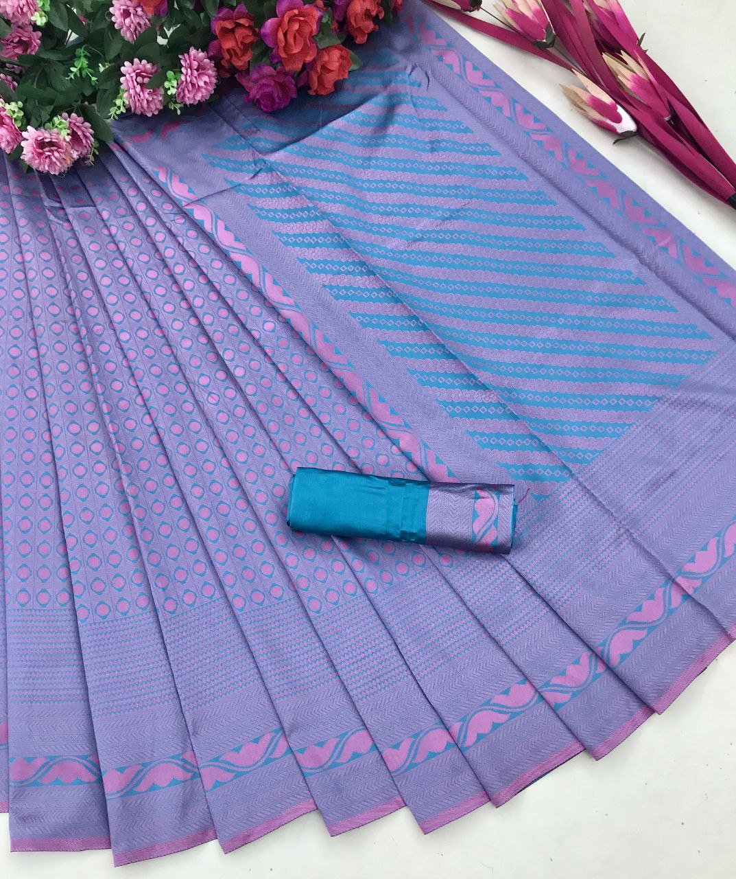 Fabric: It is made from the matching silk fabric provided with the saree, ensuring the color and sheen are perfectly synchronized.